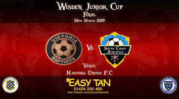Wisden Junior Sports Cup Final Victoria Baptists vs South Coast Athletico Tuesday 26th March 2019 19:30 Kick Off Hastings United F.C Chopbacks look to…