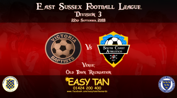 Read MoreEast Sussex Football League Division 3 Victoria Baptists vs South Coast Athletico Saturday 22nd September 2018 14:00 Kick Off Old Town Recreation Chopbacks look…