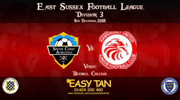 Read MoreEast Sussex Football League Division 3 South Coast Athletico vs Hawkhurst II Saturday 8th December 2018 14:00 Kick Off Bexhill College 3G Chopbacks back…