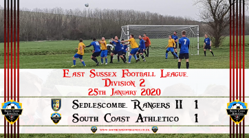 Read MoreEast Sussex Football League Division 2 Sedlescombe Rangers II 1-1 South Coast Athletico Saturday 25th January 2020 Bulverhythe Recreation Chopbacks stumble but still go…